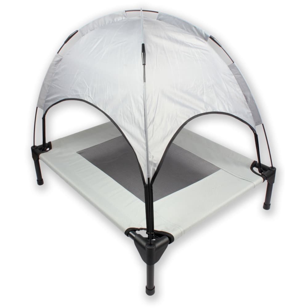 Provide overhead resting area, suspended design to avoid dampness and cold air, suitable for outdoor camping, courtyard use, keep pet's body dry andilated, especially suitable for elderly dogs with joint discomfort.